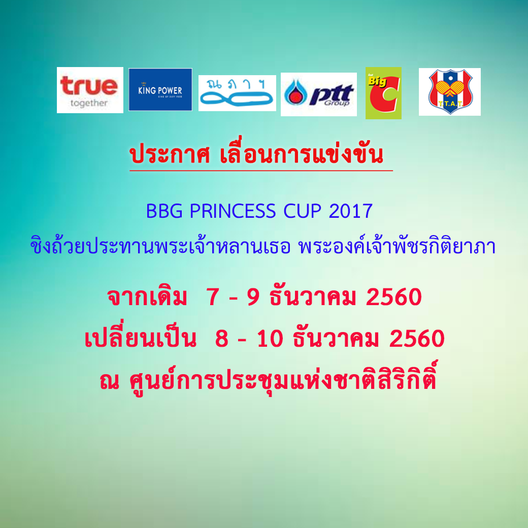 BBG PRINCESS CUP 2017 ชิงถ้วยประทานพระเจ้าหลานเธอ พระองค์เจ้าพัชรกิติยาภา