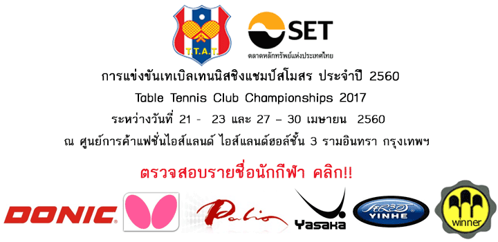 การแข่งขันเทเบิลเทนนิสชิงแชมป์สโมสร ประจำปี 2560