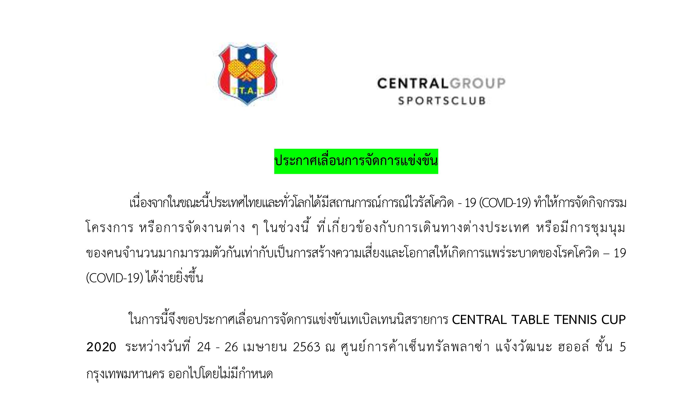 การแข่งขันเทเบิลเทนนิส CENTRAL TABLE TENNIS CUP 2020