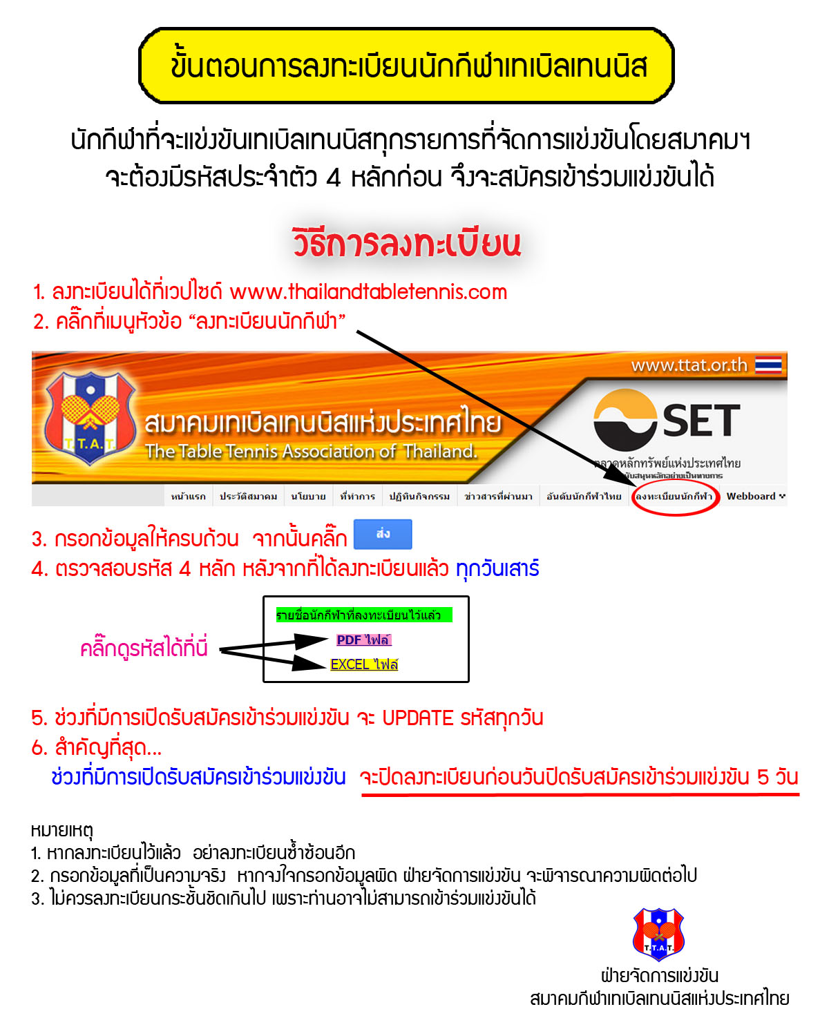 >>> ขั้นตอนการลงทะเบียนเพื่อรับรหัสประจำตัวนักกีฬา <<<