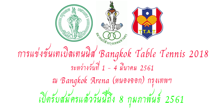 การแข่งขันเทเบิลเทนนิสรายการ Bangkok Table Tennis 2018